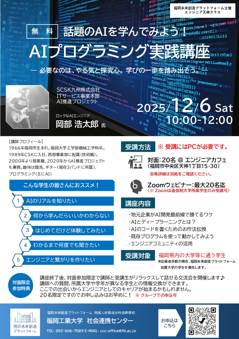 2025年度福岡未来創造プログラム:「エンジニア天神クラス」参加者募集について