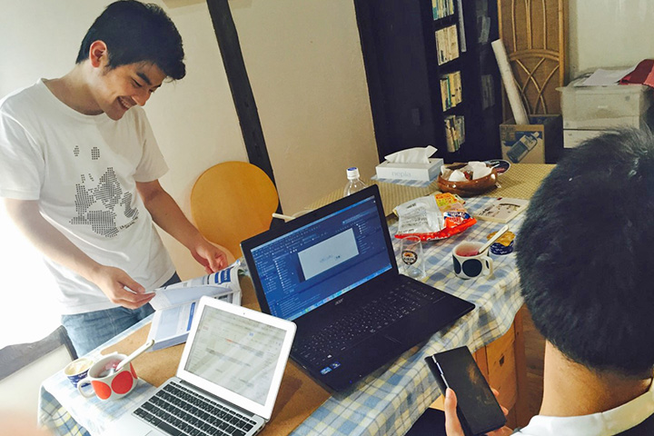 朝寝坊の原因になる二度寝を解消するためのスマートフォンアプリの開発を進めています。モーニングコールを世界中でかけ合うこのアプリは、無料で配布することでユーザー数を増やし、広告料金で収益を上げていく予定です。すでに宣伝活動として福岡市内の飲食店、バーなどに予告チラシの設置をお願いしています。当初は難航したアプリ制作ですが、新しい協力者を見つけることが出来て何とか実現できそうなので、しっかり完成までやり遂げたいと考えています。