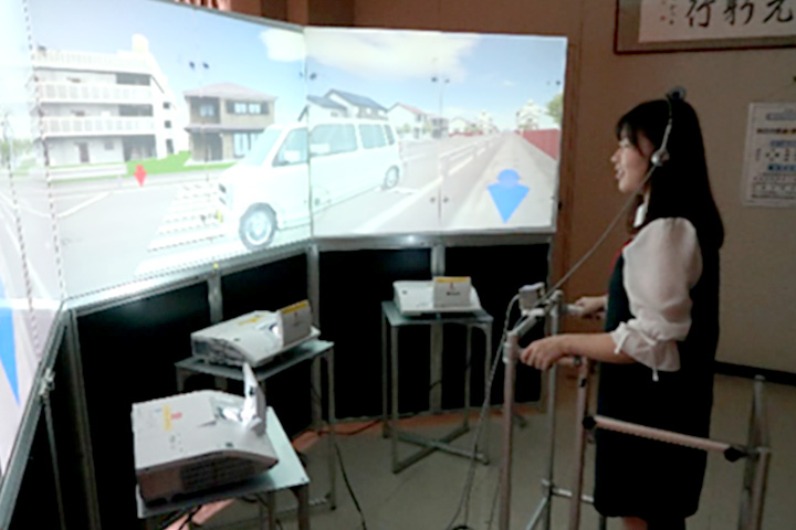現在日本では、高齢者による交通事故数が上昇しています。そこで私たちは、高齢者の交通事故死者数を減少させるために「高齢者の交通安全を目指したVRシミュレータの開発」を行っています。シミュレータを開発する上で、現在実用化されている交通シミュレータについて知るために、今年の9月1日に福岡警察本部を訪問しました。交通安全シミュレータは持ち運びが大変で、導入にかかるコストが高いそうです。これらの問題点を改善するには、VRが適していると考えました。今後は、福岡県警察の方にアドバイスをいただき、シミュレータの改善を行う予定です。