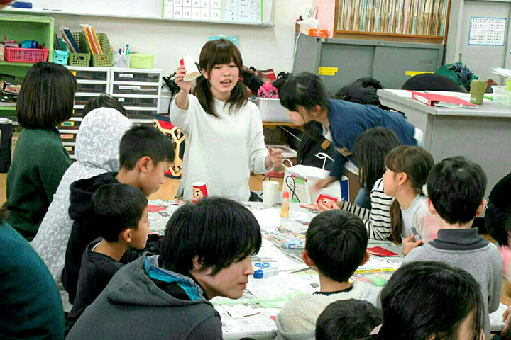 リトルハンズ(リトル)の活動は大きく3つに分けることができます。1つ目は留守家庭子ども会への訪問です。月に3回から4回程度、訪問しています。2つ目は小学生を対象に行うイベントの企画・運営です。イベントは、小学生の長期休みの際に行います。内容は、ダンボールやペットボトルを使った工作や体を動かすものなど様々です。3つ目は、箱崎小学校での授業サポートです。1年生から6年生の算数の授業に入らせていただき丸つけなどの先生のお手伝いを行っています。これらの活動を通して、たくさんの子どもと触れ合い多くの学びを得ています。