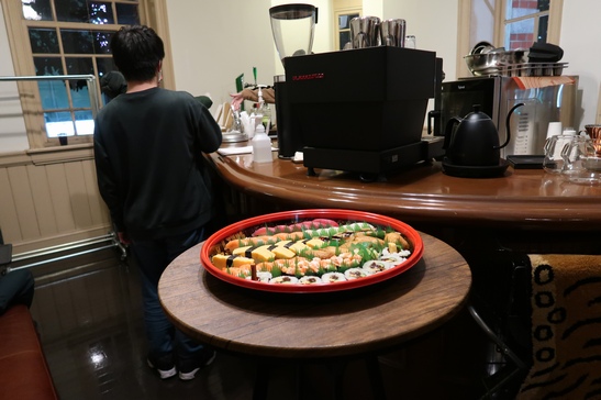 講座終了後、講師と対面受講者(あるいは対面受講者同士)がカフェテリアで談笑しながら意見交換・相談する様子